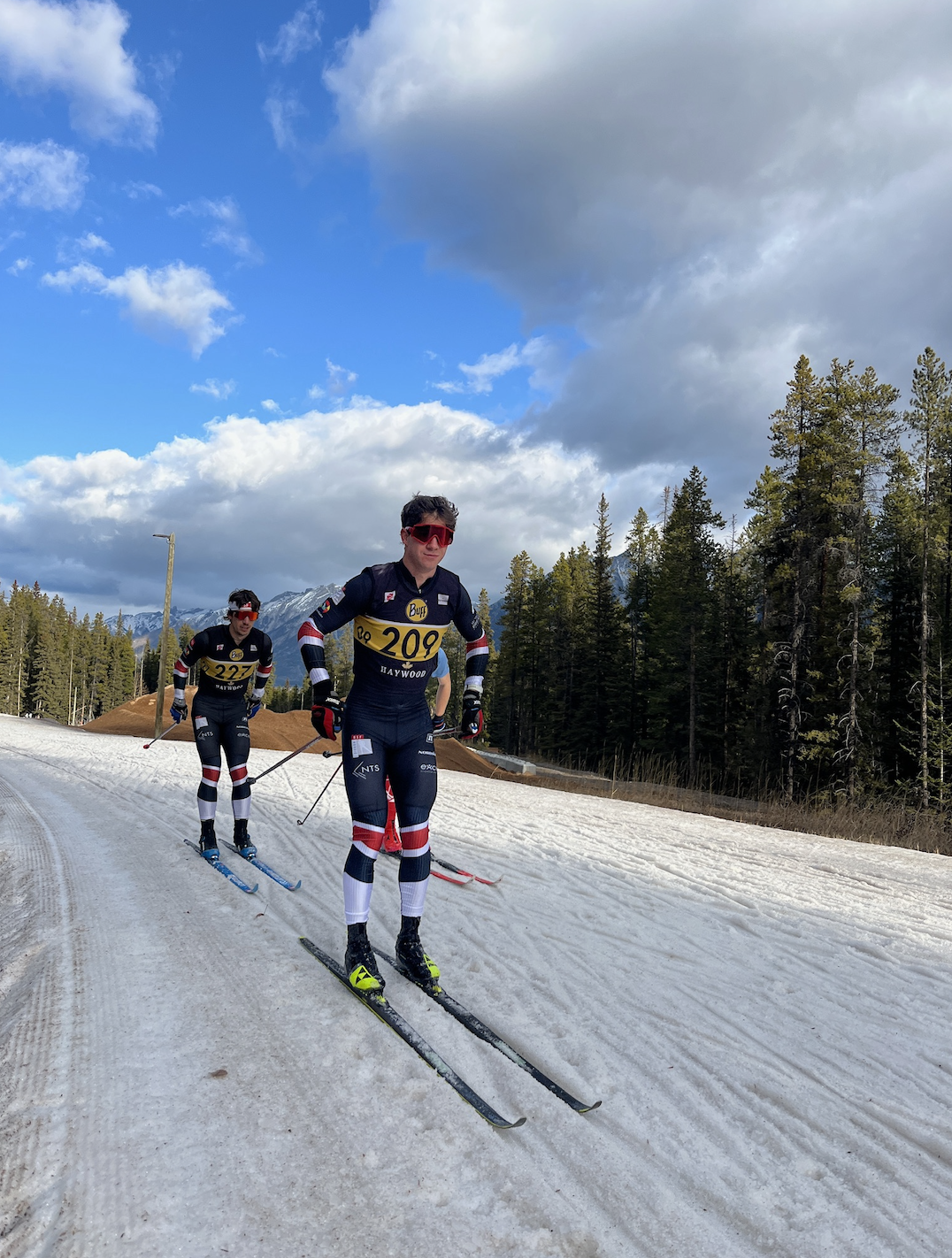 Rollerskiing into November and even December is not the most enjoyable; we are antsy to get on snow and we know we will have to be sharp on snow for important races in less than a month. Canmore, Alberta, is our favorite place to catch early snow during the fall. This week our team has been training on Frozen Thunder, a loop built entirely from snow saved from the year prior.
